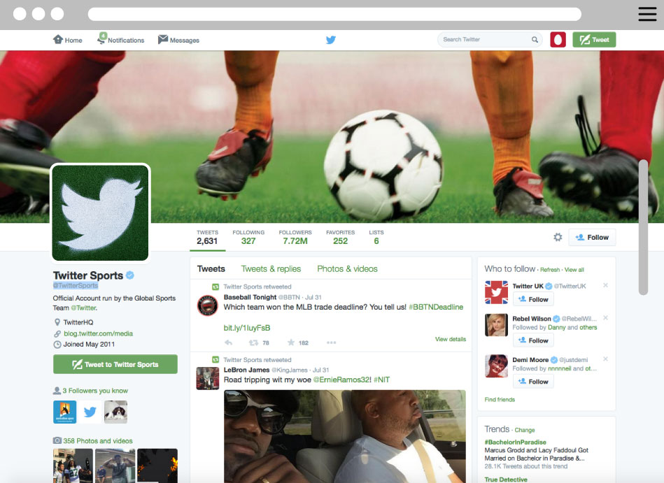 ← 4 5 → ← 4 5 → THE LINE IdentityTwitter sports, with over 10 million followers, engaged THE-LINE to bring the Twitter bird to life! We added some real life fake grass and everyone was happy! Game on . . .LAUNCHAUG 2015CLIENTTWITTERDESIGNTHE-LINE LIKE WHAT YOU SEEDROP US A LINESIMILAR WORK AllIdentity Night MarketsFAIRFAX MEDIA VIEW BrandingVarious VIEW BrandingSNAP VIEW BrandingVirtual Visits VIEW IdentityADVOC8 VIEW